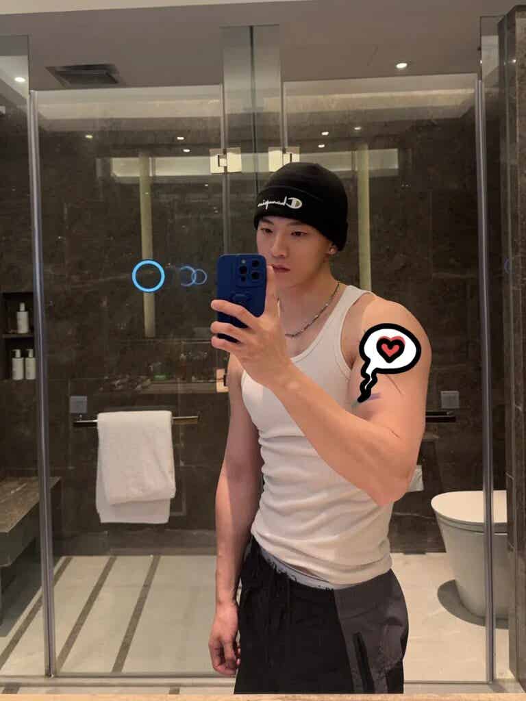这位小哥哥身高有 178 公分,体重大概在 73 公斤左右。他也保持着日常健身的习惯。看上面的一些照片我们也可以感觉到小哥哥的身材应该还是不错的。他的手臂维度也不小,看小哥哥自己的介绍,他的臂围有 38 公分。