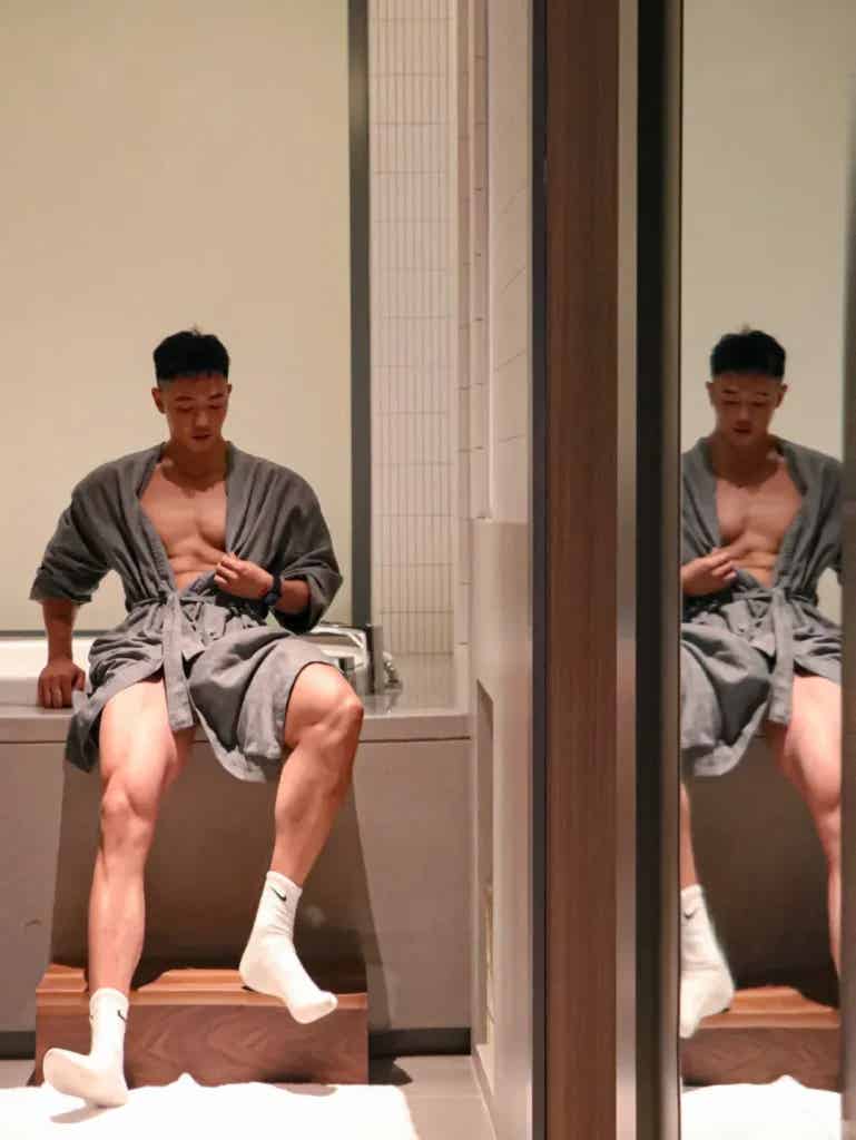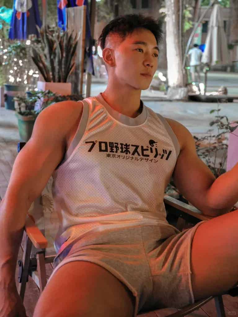 小哥哥的皮色是健康的小麦色,配上短发、宽肩、细腰以及厚实的肌肉和不高的体脂,应该算是很多人的理想型了。