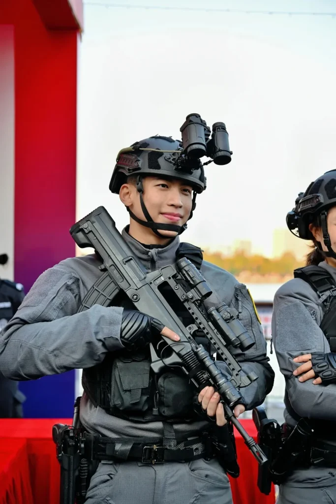 这位小哥拥有阳光帅气的脸庞,立体的五官在特警装备的衬托下更显英气十足。的一举一动散发着自信与从容,举枪而立的姿态更是展现了职业特警的硬朗风采,堪称“行走的荷尔蒙”。