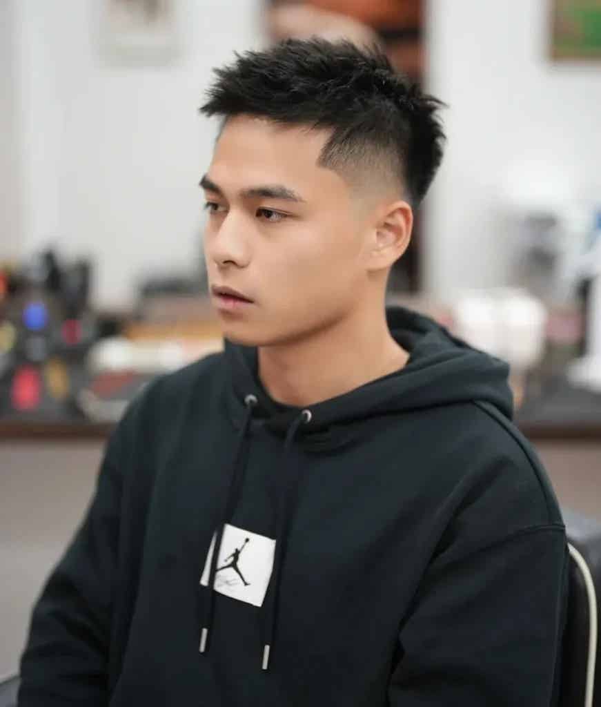 要说这些年来最受男生们欢迎的发型,就莫过于前刺发型了!这款发型需要把两边的头发修剪得干干净净,然后顶区的头发稍微保留一点长度,以便可以把头发往前面抓起来,整体造型会显得非常有轮廓感,展现男生们硬朗气质,很值得尝试,剪完不帅你打我!