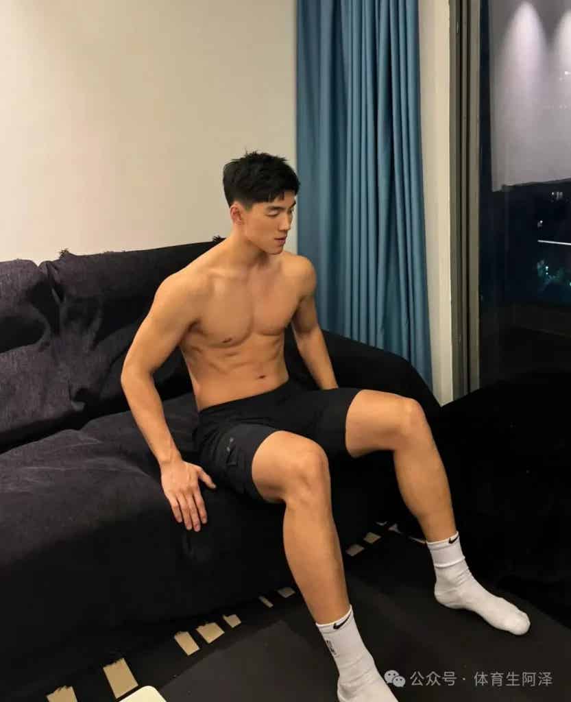 单单这个图片就让阿泽沉沦许久了。这个白袜大脚应该每个小男生都会喜欢把!要是这张图片发到社交媒体上面,那么估计评论区都不敢打开啊哈哈哈啊哈。一打开全世界都开春了哈哈哈哈。更别提这个硬汉般的身材和颜值了,这个身材有点像那种体脂率特别低的,腹肌也是一块一块的,虽然不是很大,但是感觉非常有力量感。尤其是这个粗壮的大腿,好像坐上去感受一下腿部的力量啊哈哈哈哈。