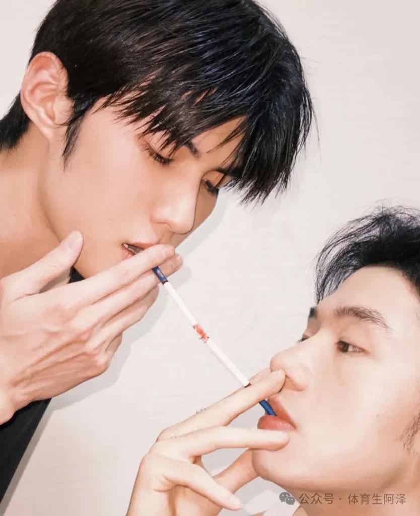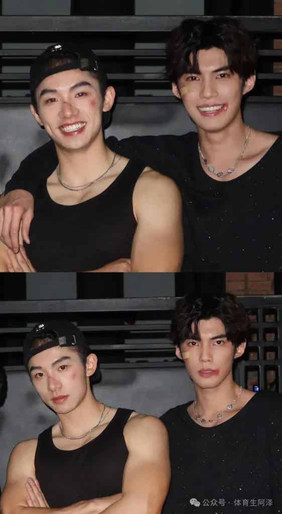 再看到这张的时候阿泽感觉希望来了啊哈哈哈哈哈。谁家兄弟两拍照这么拍啊,一张是正常刷帅,一张又是右手搭在他的肩膀上,而且仔细看,他的手都摸在前面那个男生的手指了哈哈哈哈。太好磕了。这么高的颜值组合阿泽见的可是不多了。希望这位可以99,当然分了的话可以通知阿泽一下,阿泽可以趁虚而入,哦不,趁机安慰一下他们的心灵哈哈哈哈哈。