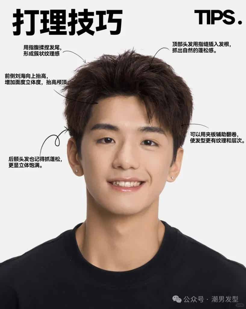 本期推荐网红同款的「纹理微分」,这款发型能够在视觉上抬高颅顶,显脸小,微露额头更显精神,推荐中短发男生尝试!
