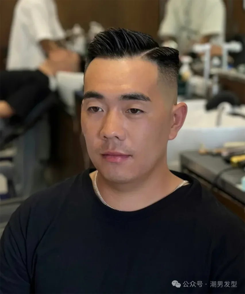 寸头是一款比较简约、时尚的男士短发。不同年龄阶段的男士剪都会呈现出不一样的气质感,头发长度通常保持在 2-5 毫米之间,整体造型干净清爽,给人一种干练、整洁的感觉,能展现男士的阳刚之气。适合追求简约自然风格,以及发质较软或较硬都能驾驭的男士。第五款:复古侧分油头
