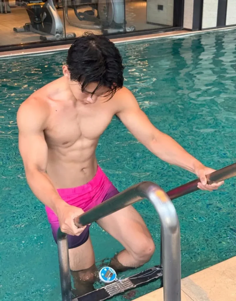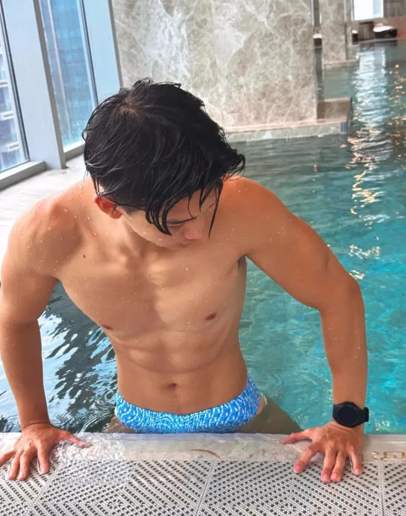 所以你看,美好的肉体从来不只是造物主的恩赐。当小刘凌晨五点出现在泳池做波蛙特训,当他在健身房里用TRX带模拟水流阻力,那些顺着肌肉纹理滚落的汗珠,都在诉说着比八块腹肌更性感的真相:所谓完美体型,不过是把日复一日的坚持,熬煮成让人移不开眼的荷尔蒙。